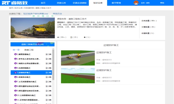 《道路施工技术虚拟仿真课程》是道桥专业的一门实践性、综合性较强的职业技能核心课程,是施工员、技术员和建造师等职业岗位培训、鉴定、考试的核心内容,它是学生在从事道路相关工作的知识框架和理论体系。